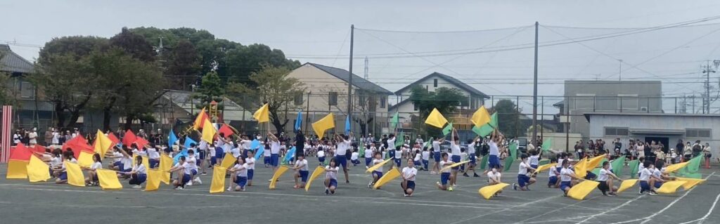 ホーム>活動報告 浅井南小学校 体育発表会(運動会)(10月18日)2025年10月19日 『つなごう友情!ひびけ応援!心を一つに全力だ!』をスローガンに、10月18日(土)8時55分から開会式が始まり、徒競走や表現・競争遊戯が行われ、みんな心を一つにがんばりました。 全校生徒による「はじめの体操」 1・2年生の玉入れ 3・4年生のでかパンリレー 5・6年生の表現「つなぐ想い ~君の元へ届くように~」 表現の解説:今年大ヒットしたアニメ映画の主題歌にのせて、アニメの主人公と重なるような、小学校生活での成長の軌跡を表現します。「感謝」や「希望」の光を旗にたくし、大切な人の元へ想いを届けます。 活動報告,企画広報委員会