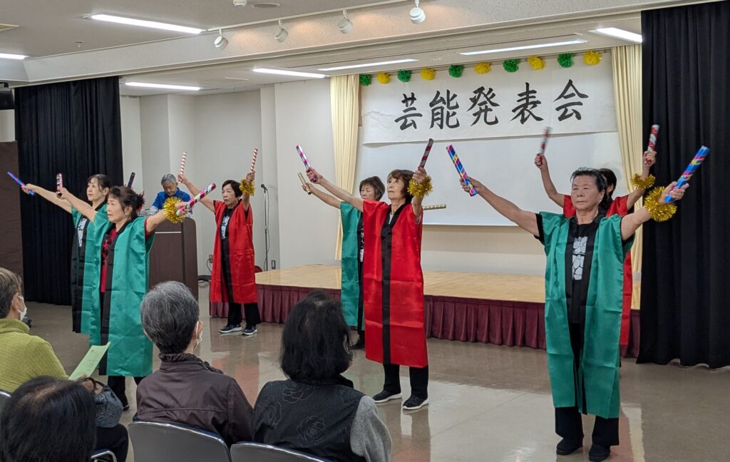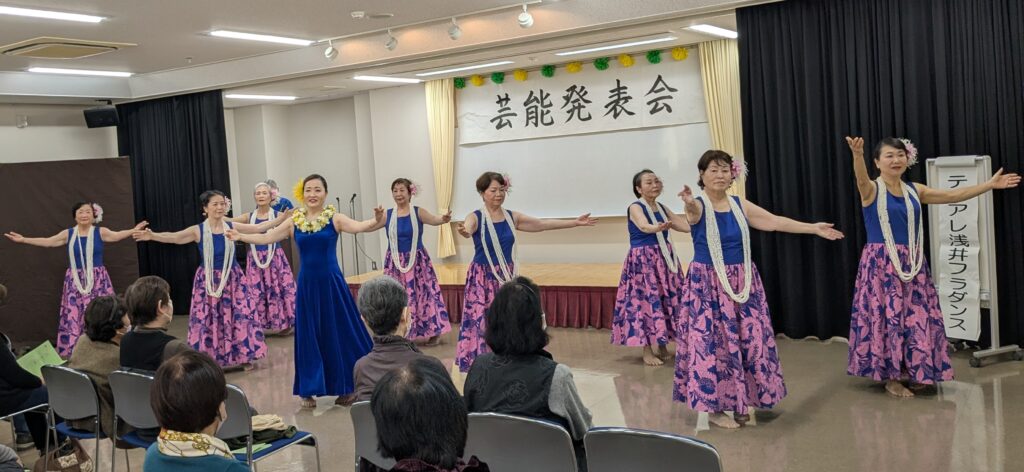 11月16日(日) 芸能発表会が10時から浅井公民館でありました。午前は、大正琴や詩吟・詩舞、フラダンス、太極拳、世界のフォークダンス、健康体操の発表があり、午後は詩吟、レク・ダンス、フラダンス、日本舞踊、健康体操の11組の皆さんが日頃の練習の成果を披露しました。感動の拍手に包まれていました
