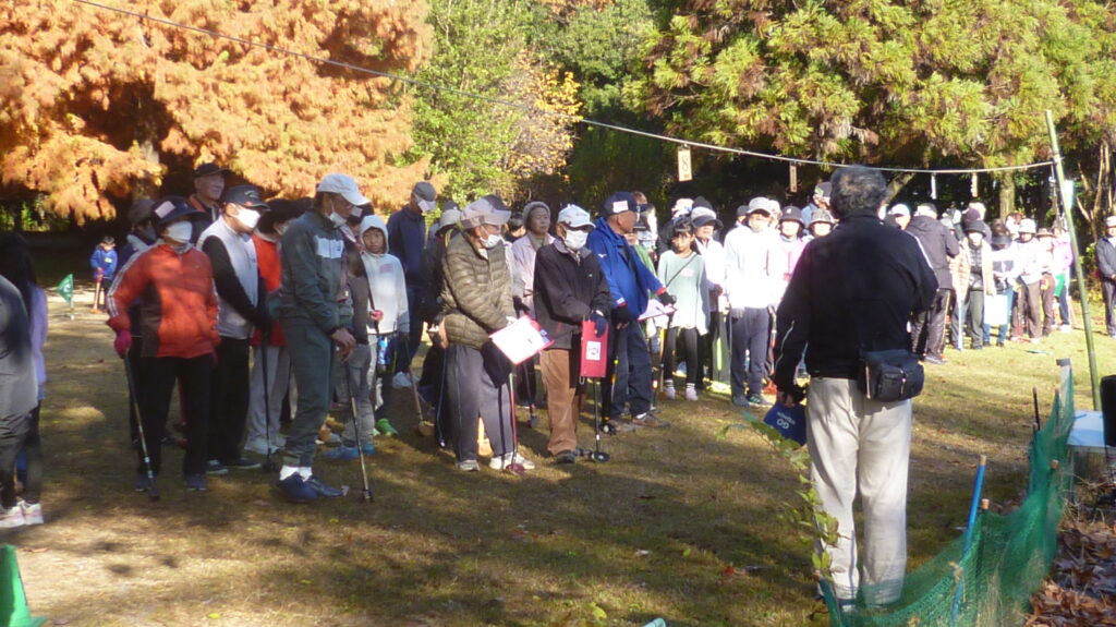 11月29日(土)大野極楽寺公園グラウンド・ゴルフ場にて浅井町三世代交流グラウンド・ゴルフ大会が開催されました。小中学生とお父さん・お母さん・おじいちゃん、おばあちゃんの80名が参加しての大会でした。成績はふれあいたより1月号をご覧ください。