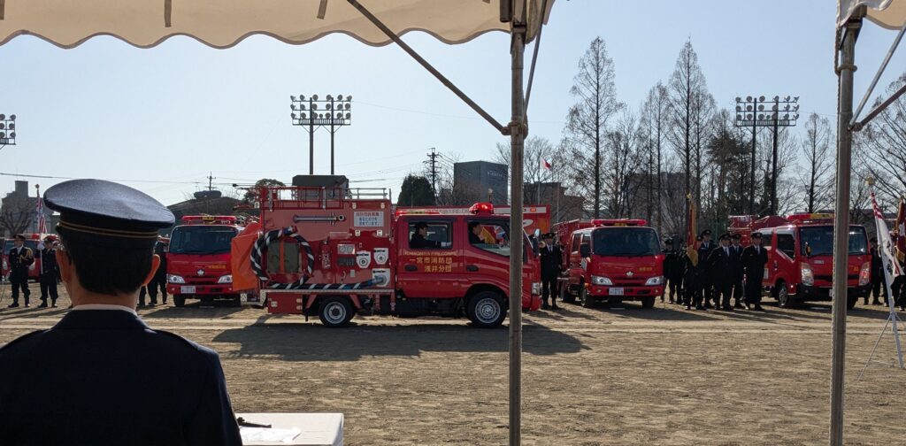 1月18日(日)九品地公園競技場において、一宮市消防出初式が行われました。浅井消防団は、新しい消防車で車両分列行進に参加しました。合わせて、小川 英二 氏に愛知県知事表彰(永年勤務功労賞)、前田 紀和 氏に愛知県消防協会長表彰(善行章)が贈られました。長きにわたり、浅井町の防火活動に貢献していただきありがとうございます。