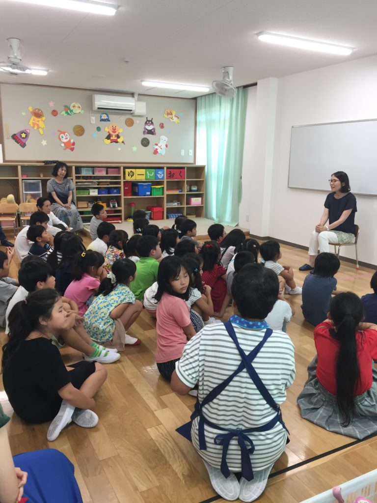 絵本を読んでもらうのとは違い、お話を聞いてそれぞれが想像するストーリーテーリングは絵本にはないお話の世界観が広がります。暑い夏の午後、子ども達はお話の旅を楽しみました。