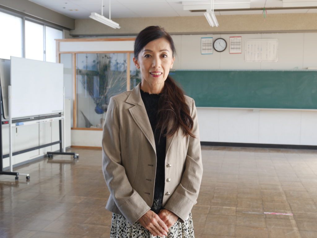 学校に伺うと江崎先生が笑顔で迎えてくださいました。凛とした立ち姿がとても綺麗で、こちらまで背すじを伸ばして良い姿勢を意識してしまいました。