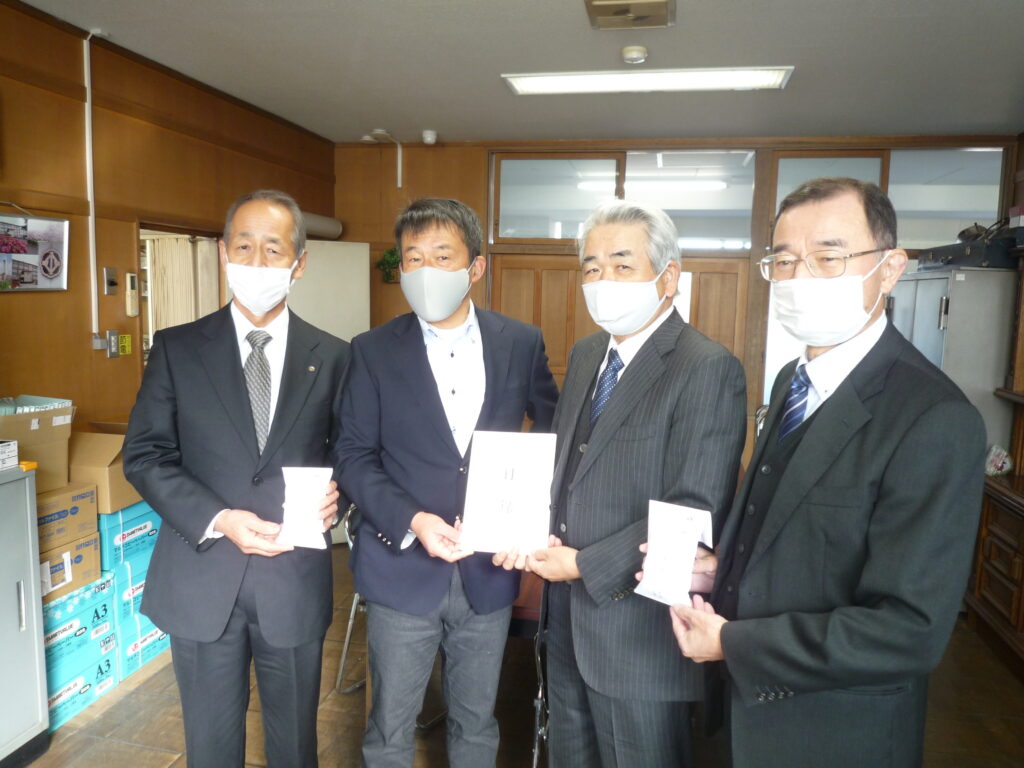 ブザーを贈っています。今年も1月19日(火)川原連区長と井戸、柴垣副連区