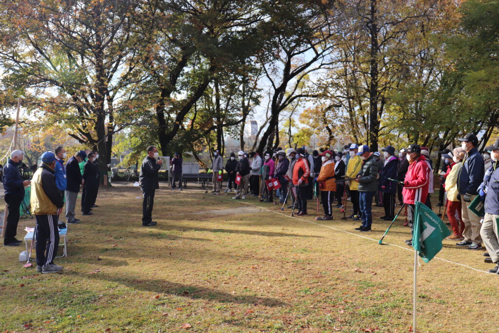 12月4日(土)午前9時より「令和3年度三世代交流グラウンド・ゴルフ大会」が大野極楽寺公園グラウンド・ゴルフ場で開催されました。浅井連区学校外活動推進委員会と浅井公民館の共催事業で新型コロナの影響で2年ぶりの開催となりましたが、小中学生の児童・生徒からお父さん・お母さん、そしておばあちゃん、おじいちゃんまでの3世代99名がグラウンド・ゴルフを通じて親睦を深めました。