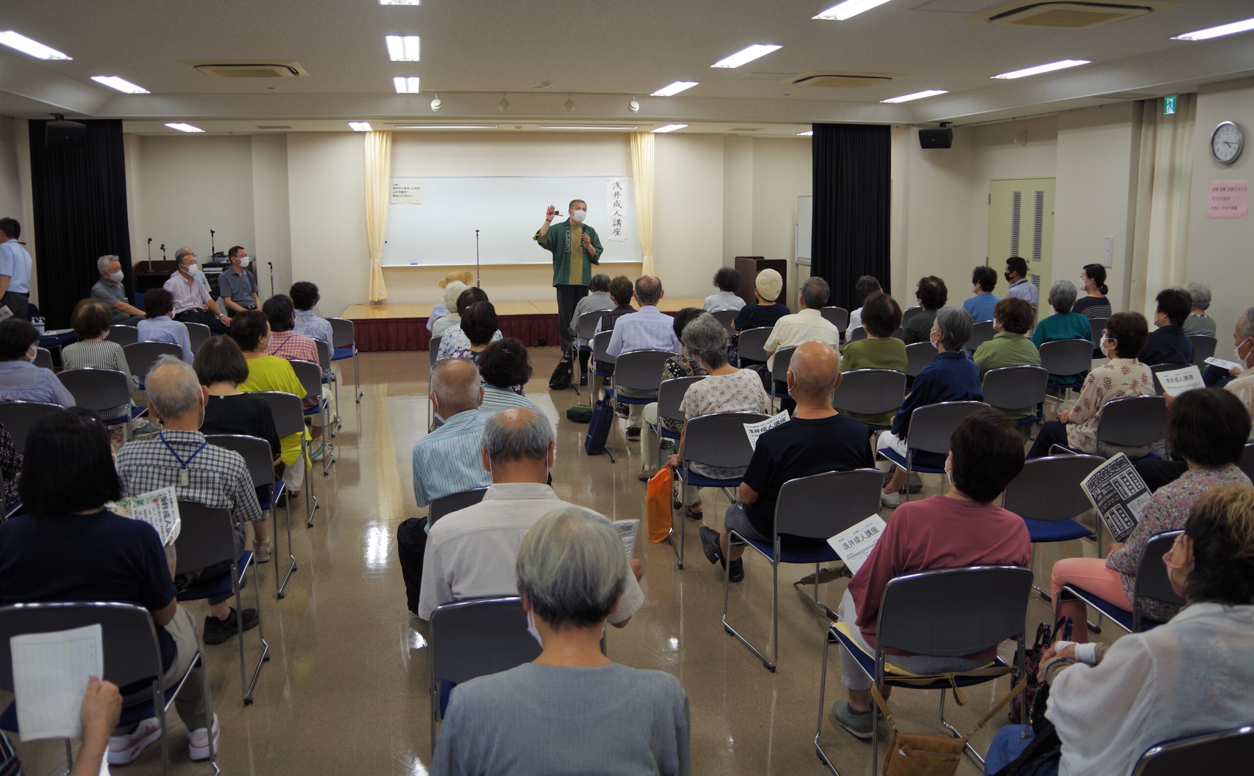 いよいよ楽しいゲームの始まりです。20名を赤、青、黄、緑の4つのチームに分け、チーム対抗で得点を競争します。最初のゲームは「お星さまをポン」。床に貼られた天の川の枠の中にいかに多くの星の玉を飛ばすことが出来るかを、競うゲームです。天の川の枠の中に飛ばすことが難しく、出来た時には大きな歓声が上がっていました。