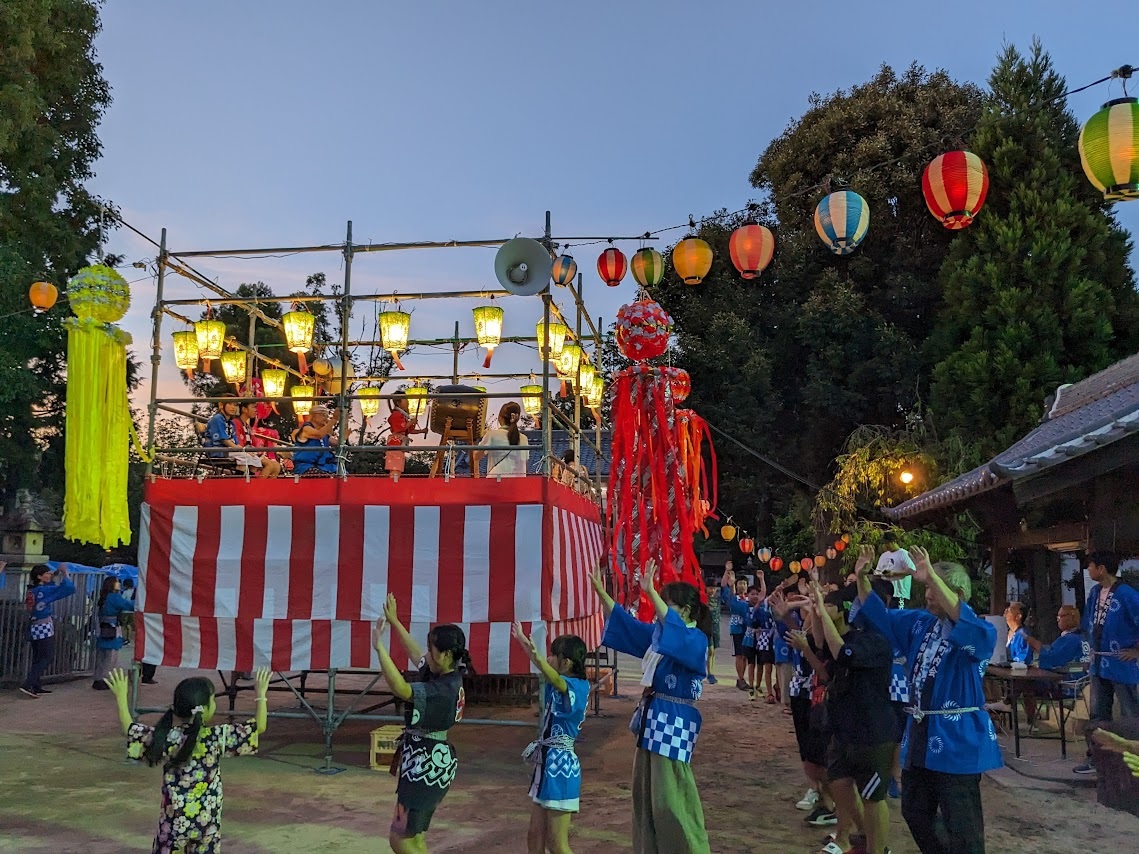午後6時20分にアトラクションとして一宮太鼓保存会の迫力ある演奏と太鼓体験会がありました。そして、午後7時から盆踊り大会が始まりました。久しぶりの開催ということもあり、駐車場が人で溢れていました。詳細は、下記の写真でご覧下さい。