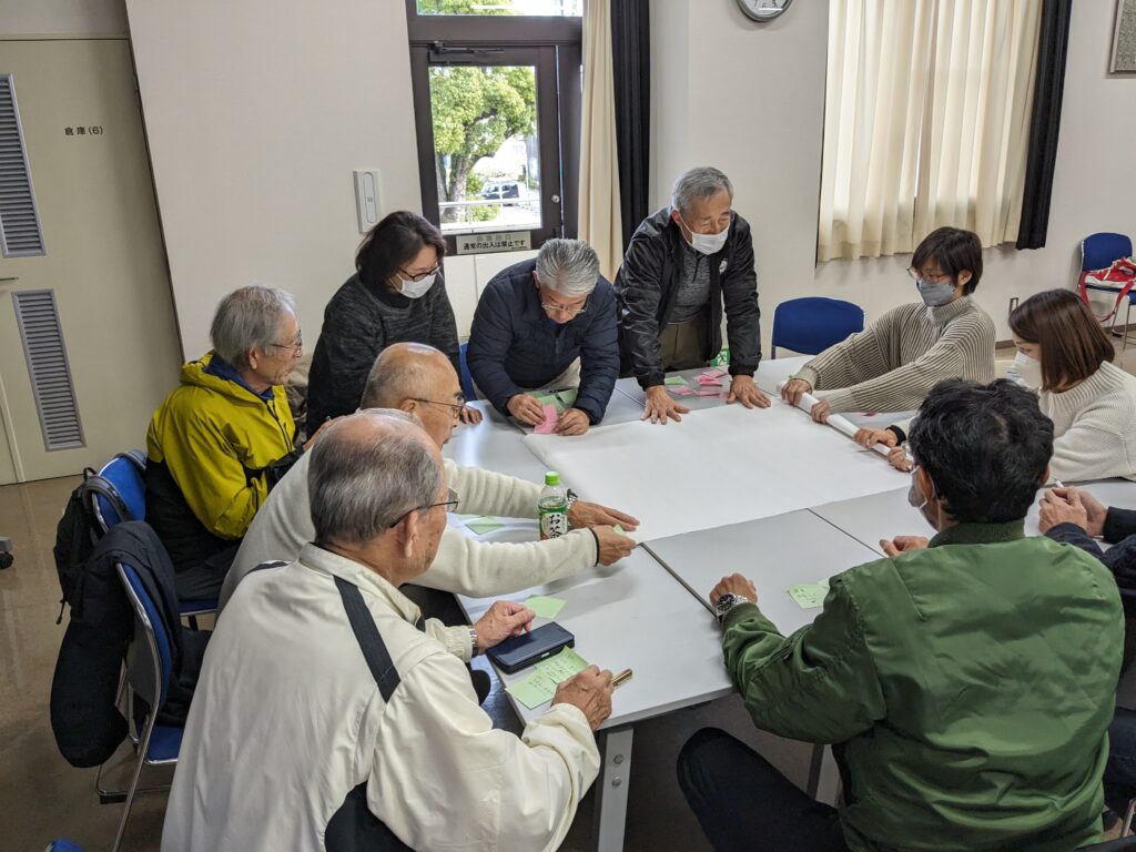 12月3日(日)防災リーダー養成講座の2日目が各町内から60名の方が参加されて開催されました。9時50分に浅井中小学校に集合、簡易防災備蓄倉庫の備蓄品を見学した後、浅井公民館大会議室で一宮消防署浅井・西成出張所職員による救急救命の実技とAEDの使用訓練、簡易担架の作り方等を教えて頂きました。昼食後、「浅井町の災害について」と題して、今後起こりうる災害から如何にして自分たちの身を守るかを地域づくり協議会の大野会長から詳しく説明して頂きました。その後、5つのグループに分かれ、2日間の講義、実習をふまえて、「町内防災体制の課題と対応について」という内容で約1時間討議をして、その結果を各グループから発表しました。受講した皆さんには、今回の講座で学んだことを来年度実施予定の「浅井町防災訓練」で是非生かして頂きたいと思います。皆さんの活躍を期待しています。2日間お疲れ様でした。