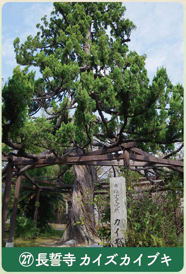 寺の記録によれば樹齢200余年で、根周り3.3m、胸高囲2.5m、高さ10mにもなる。幹の上部や下部から枝が伸びて地面に着く程である。