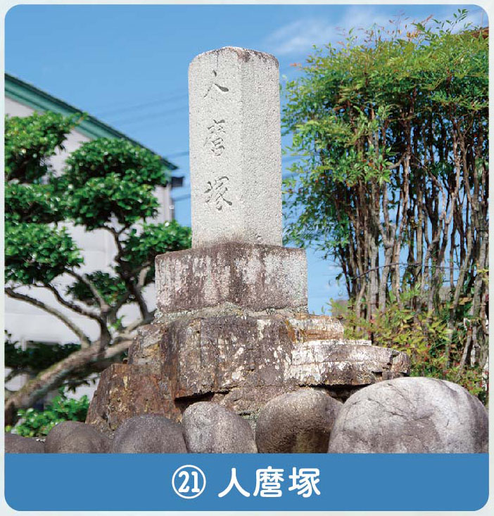 古来河田の四塚の一つで、葉栗臣人麿、別名・粟本人麿の古墳と伝えられる。7世紀後半ごろ葉栗郡で郡司として活躍し、光明寺を建立した。
