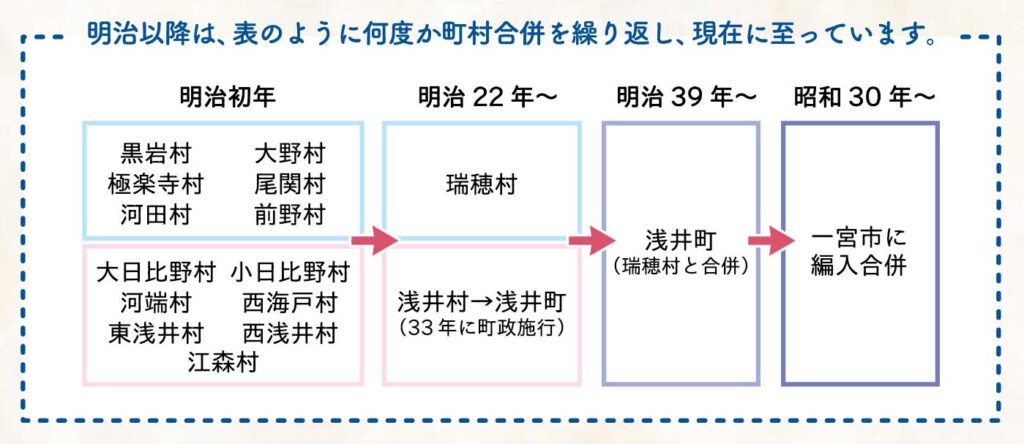 浅井町は、旧木曽川の支流により交通の要所となっていました。それと共に、近くの宮田(江南市)付近に大型の船の着く重要な船着き場があり、山間地と尾張平野南部を結ぶ中継的な役割を果たしていたと考えられます。