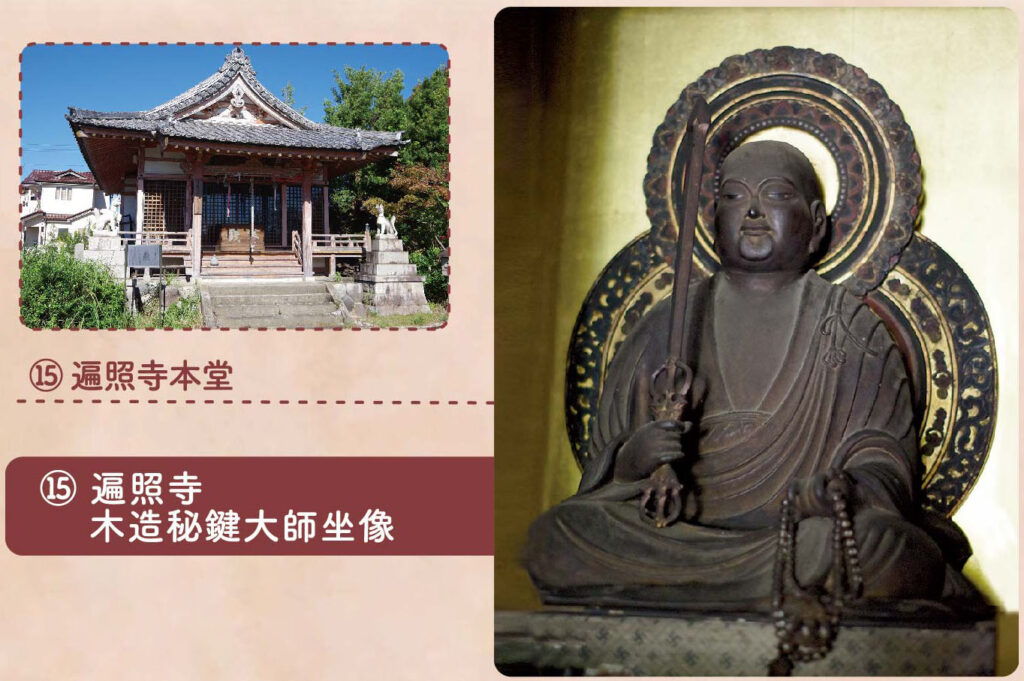 右手に剣、左手に数珠を持つ特殊な姿をした弘法大師像である。鎌倉末期から室町初期に制作と推定される。