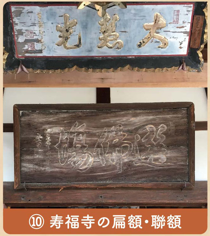寿福寺には、隠元・木庵・即非の3人の僧による額が掲げられている。この3人は黄檗の三筆といわれる名筆家である。
