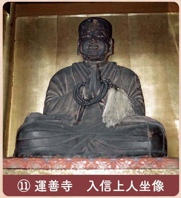 鎌倉末期から室町初期の作。入信上人は親鸞聖人の直弟子の一人で、建長3年、80歳で亡くなった。像は中心部を一木で彫り、力強い表現がされている。